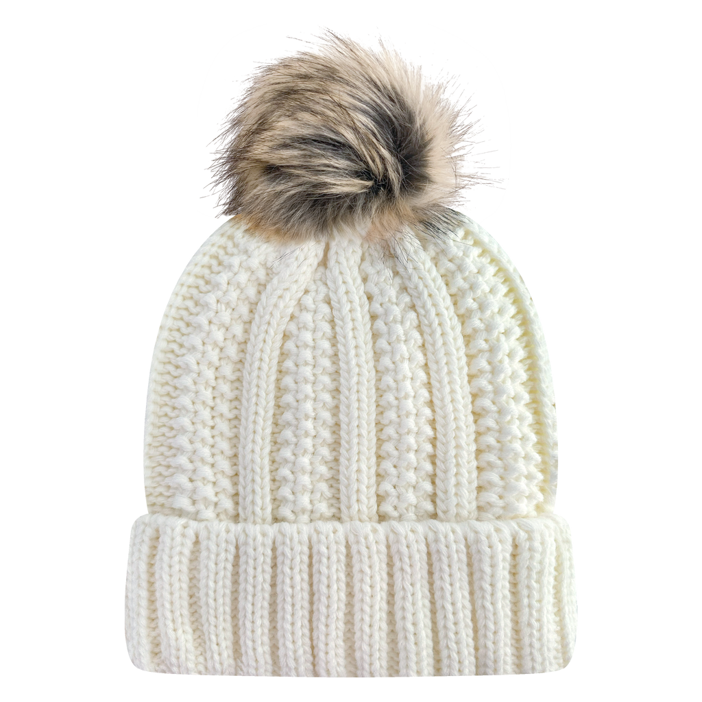 The Below Zero Beanie is sure to keep you warm and cozy. With a thick knit-in pattern and a plush lining, this beanie keeps the cold away. It's finished with a faux fur pom, making it a stylish option for any wintry adventure.