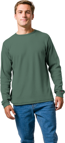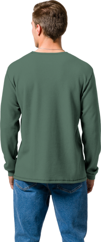 The Waffle Unisex Long Sleeve Crew is made from our new soft and lightweight waffle knit fabric and can be used as a thermal base layer on your ski trip or as a simple yet fashionable look for date night. This long sleeve features a classic easy fit with forward side seams detailed with tonal contrast stitching.