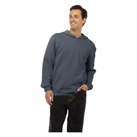 The Reverse Fleece Hood features a relaxed fit with reverse fleece detailing on the V-notch and side gussets. Finished with a front kangaroo pocket trimmed in reverse fleece for added texture.