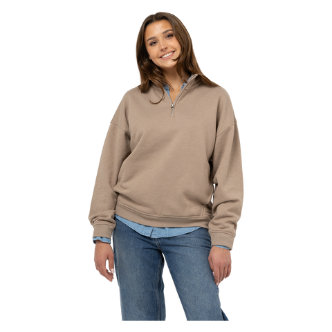 The Victory Springs Relaxed 1/4 Zip features a relaxed fit, slight drop shoulder, forward side seams, ribbed cuffs and hem, and a classic quarter-zip design.